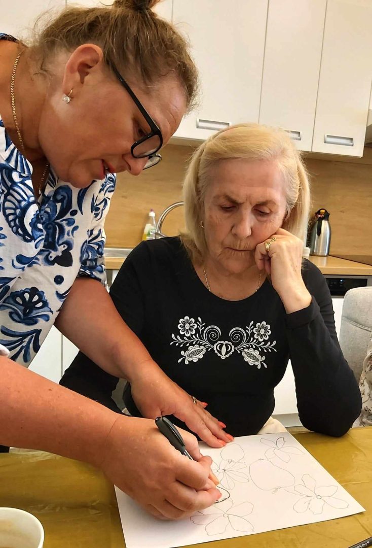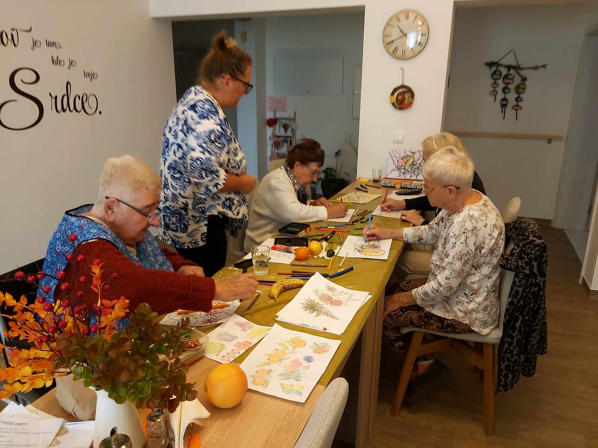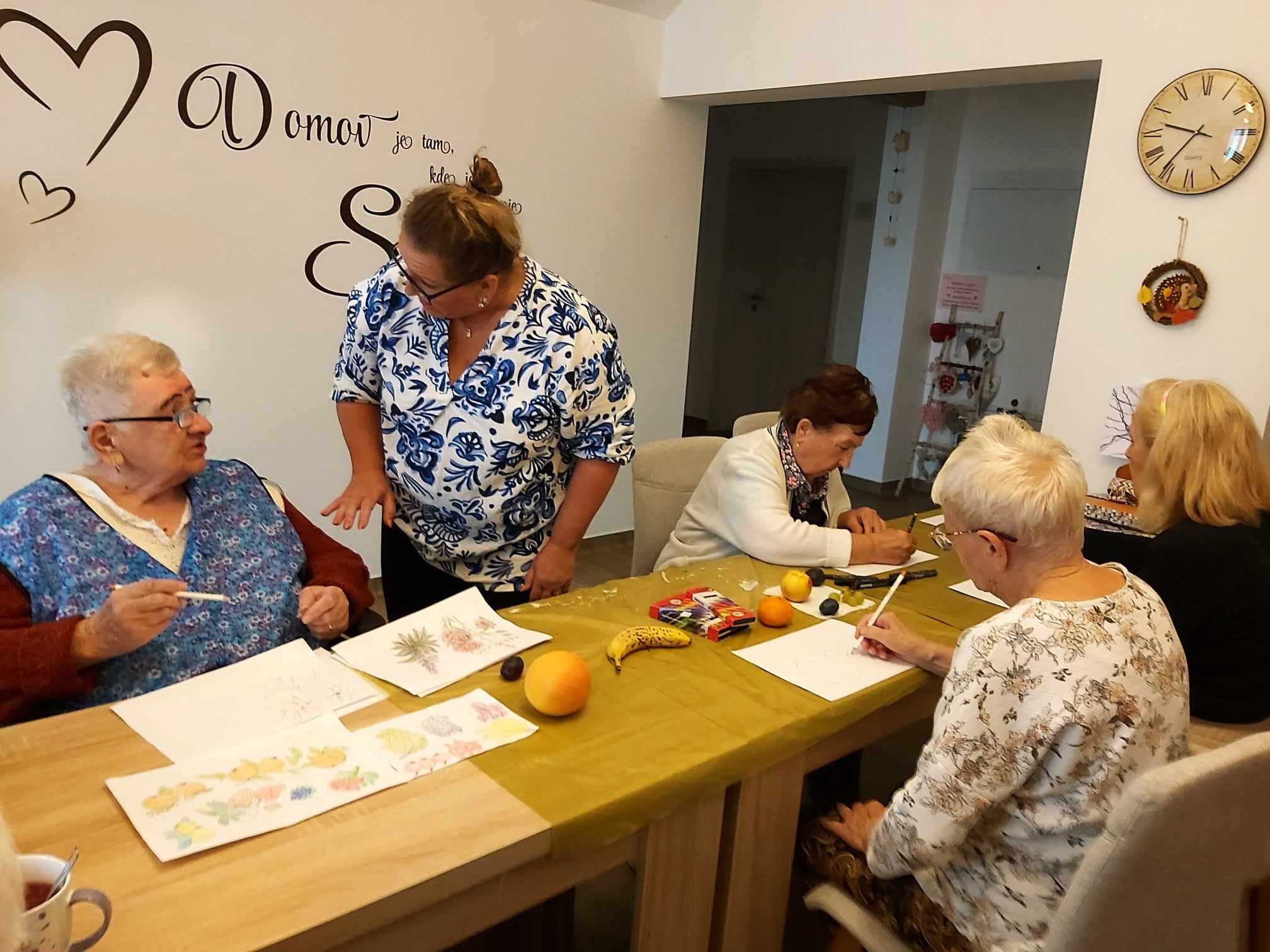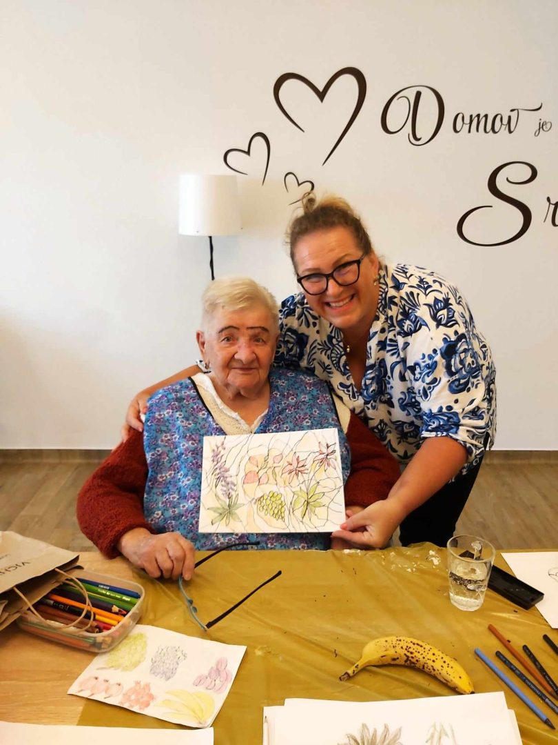 Medzi obľúbené aktivity v našom Domove pre seniorov na Ondrašovskej ulici patrí Arteterapia. Naše klientky sa radi zúčastňujú tejto aktivity, ktorú vedie certifikovaná arteterapeutka Mgr. Andrea Vyoralová. Tentokrát sme kreslili zátišie s ovocím.