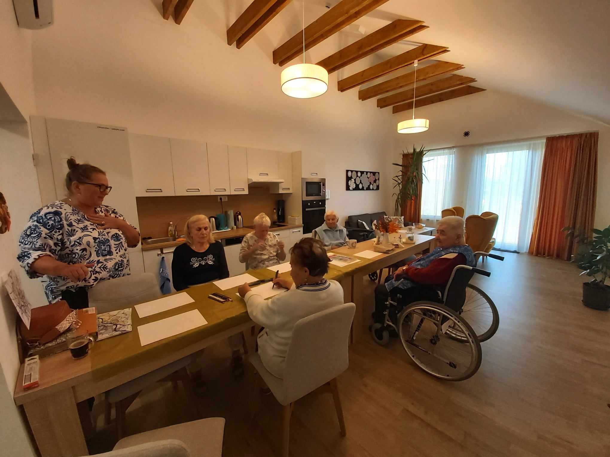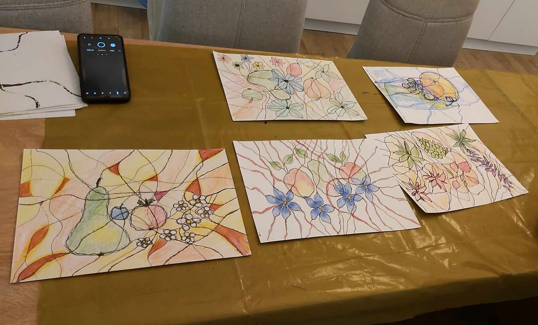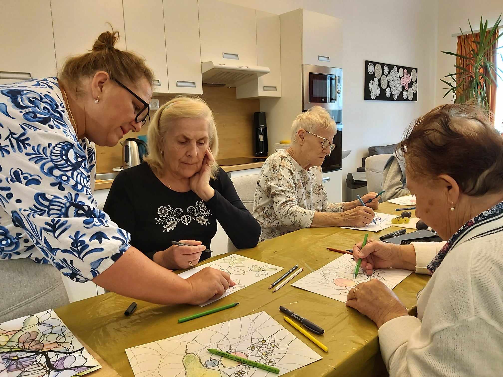 Medzi obľúbené aktivity v našom Domove pre seniorov na Ondrašovskej ulici patrí Arteterapia. Naše klientky sa radi zúčastňujú tejto aktivity, ktorú vedie certifikovaná arteterapeutka Mgr. Andrea Vyoralová. Tentokrát sme kreslili zátišie s ovocím.