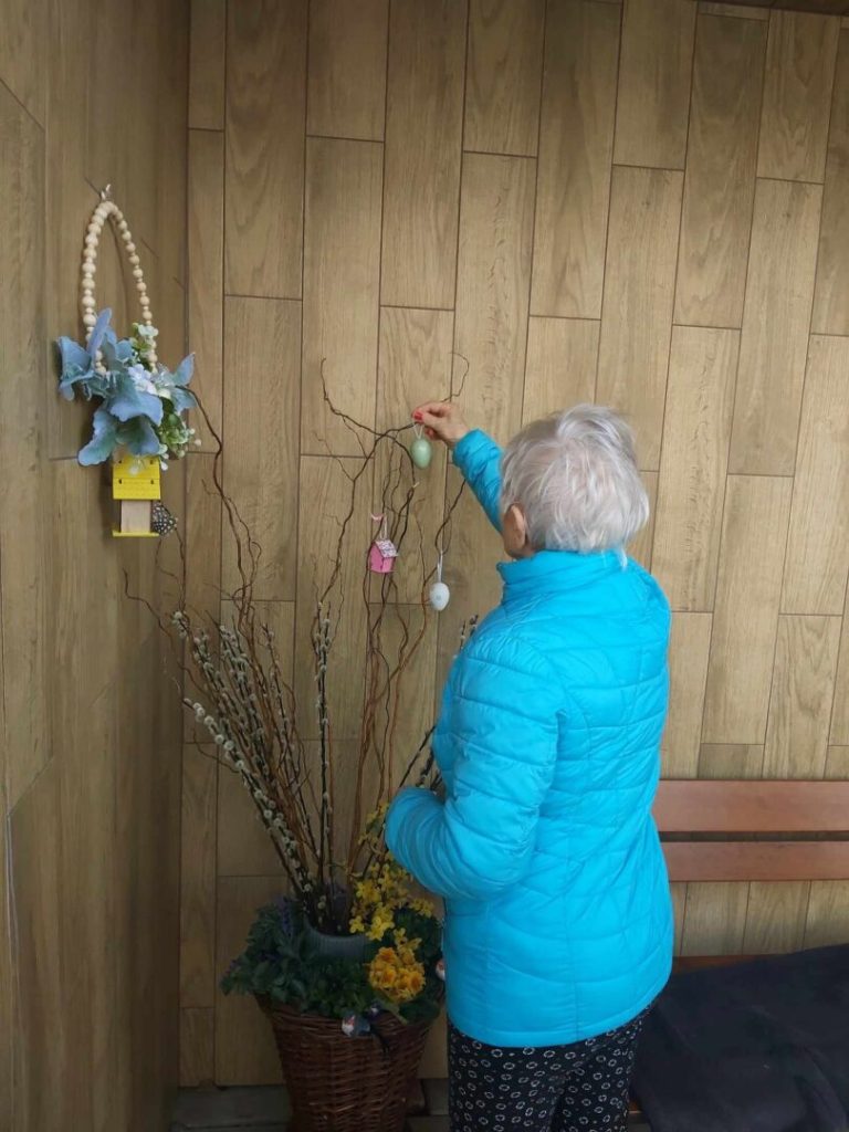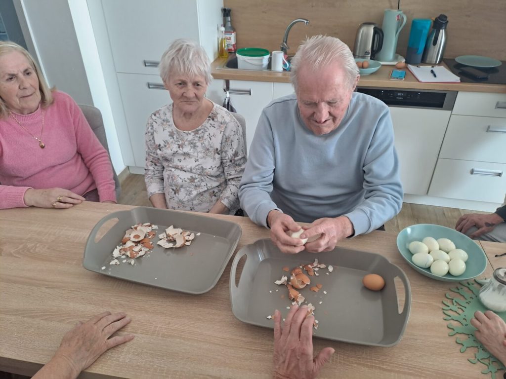 Týždeň pred Veľkou nocou sme si v zariadení spolu s klientmi spestrili okrem zdobenia vajec a priestorov aj súťažou o najrýchlejšie olúpané vajce a spoločným posedením pri vlastnoručne upečenými sladkými dobrotami, ktoré tentokrát upiekla pani Emka, ktorej týmto ďakujeme.