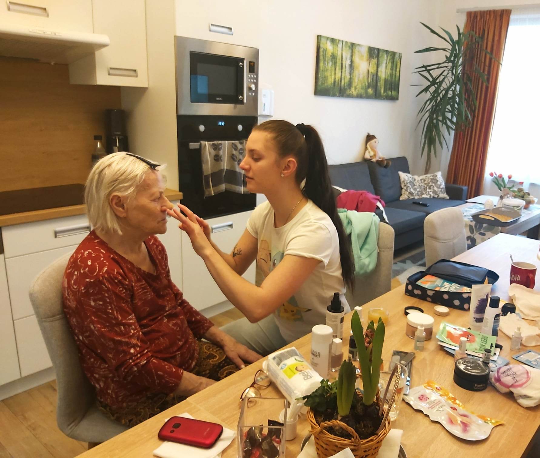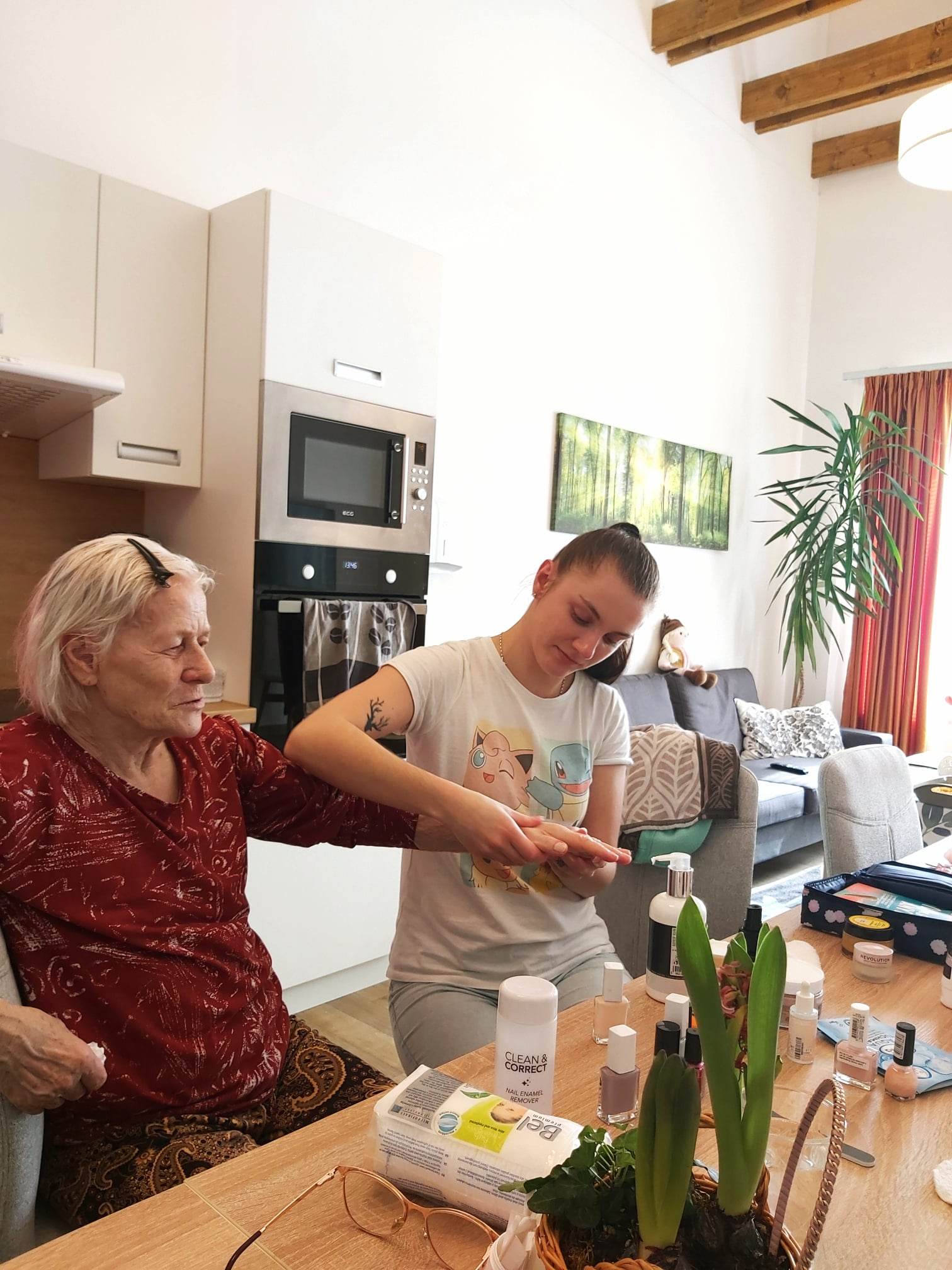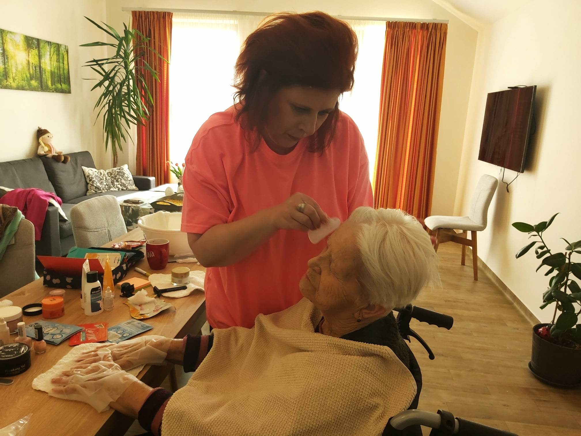 Dnešné popoludnie sa nieslo v znamení skrášľovania našich klientiek prostredníctvom kozmetických prípravkov. Naše kolegyne Viki a Beátka aplikovali masky na tvár a ruky, nasledovali masáže tváre a rúk, rôzne peelingy a lakovanie nechtov. Naše klientky si počas ošetrovania pleti oddýchli a boli veľmi spokojné. Už teraz sa tešia na ďalšie takéto popoludnie.