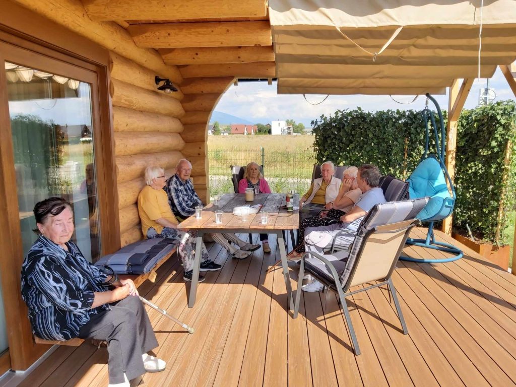 S klientami sme sa dnes vybrali na výlet k Liptovskej Mare do Mara rezortu. Počasie nám prialo a tak sme krásny slnečný deň využili na prechádzku a príjemné posedenie na terase chaty, kam nás pozvala pani Beátka. Veru, ani sa nám nechcelo odísť. Ďakujeme pani Beátke za pozvanie.
