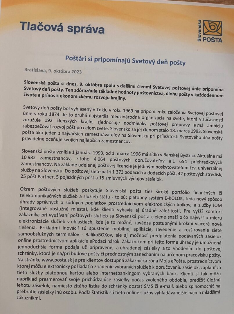Svetový deň pošty ,vďačnosti a jablka